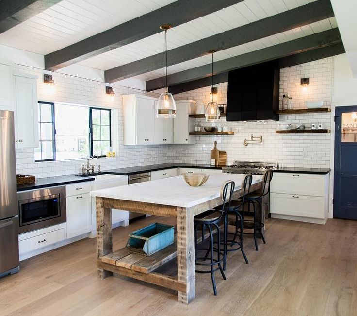 • Farmhouse Gray Kitchen with Rustic Island